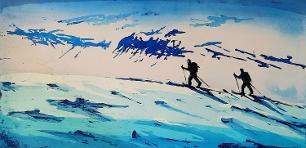 Tittel: "Sammen inn i fjellheimen" Størrelse: B:69 x H:35 Teknikk: Etsning I tillegg til prisen kommer 5% i kunstavgift.