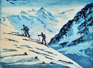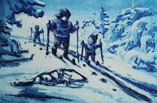 Tittel: "Vår tøffe turer" Størrelse: B:39,5 x H:29,5 Teknikk: Etsning I tillegg til prisen kommer 5% i kunstavgift.