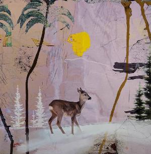 Tittel: "Vinterlys" Størrelse: B:29,5 x H:29,5 Teknikk: Blandingsteknikk I tillegg til prisen kommer 5% i kunstavgift.